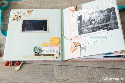 Le contenu du mini album "Efteling en famille", avec la partie album traditionnel, et la page contenant le mini écran vidéo.