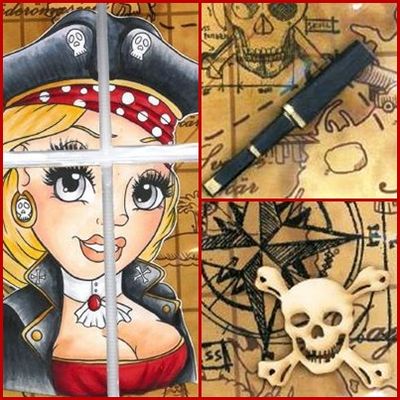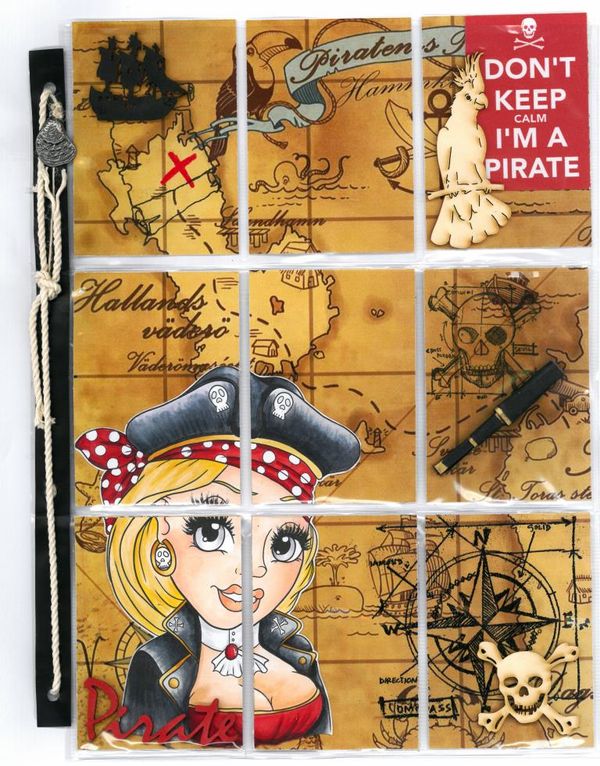 Une petite pocket letter sur le thème du pirate avec les éléments indispensable , tête de mort,perroquet et bateau