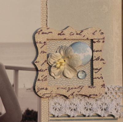 le cadre est passé à l'encre blanche, tamponné d'écritures, et enfin embossé à la poudre pailleté.