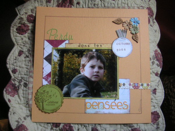 Une petite page 30x30cm réalisée avec un kit préparé par Carina (http://jeveuxduscrap.afrikblog.com/archives/2008/10/10/index.html) avec des papiers Fancy pants "All Fall" qui conviennent bien à ces photos de rentrée et d'automne. Pour compléter ma page, je n'ai pas hésité à ajouter ces feuilles en liège, tout à fait exquises.