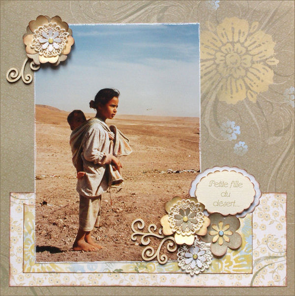 Une page toute en douceur pour une photo qui me tient particulièrement à coeur.. J'ai (encore !) utilisé les adorables arabesques en carton bois !