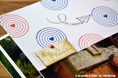Je l'ai encrée à la distress bleu marine et les fleurs à la distress oxyde rouge. Pour les détails, j'ai utilisé les neocolors et cela fonctionne bien !