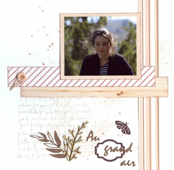 Cette page est réalisée très facilement et rapidement avec la collection "Un vent de liberté" et le pêle mêle d'embellissements assorti.