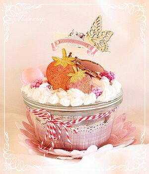 Papillon sur branche EmbelliScrap passé au glimmer mist vieux rose et papillons recouvert de crackle accent et de paillettes. Volutes décorée de points de peinture 3D.