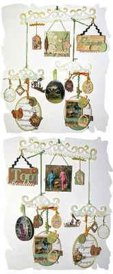 Petite page avec les photos des alliances, et pour mettre en valeur les fleurs et la couleur beige/sable, une jolie fleur en carton bois EmbelliScrap tamponnée avec un tampon "partition de musique"!