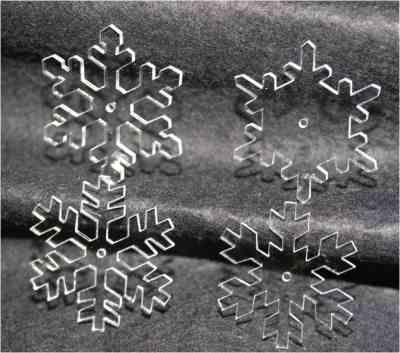Ce lot comprend 4 cristaux de neige transparents de 2mm d'épaisseur, tous différents.