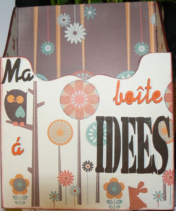 | Suite à la réception d'histoire de page, je n'ai pas pu m'empêcher de foncer sur le site et de commander ma boîte à idée. j'ai dû attendre pour la réaliser par manque de temps. Au moment ou j'étais enfin prête, mon loulou m'a fait croire qu'il avait jeté l'enveloppe qui contenait ma boîte. J'étais désespérée. Il a trouvé cela super drôle. j'imagine bien la tête que j'ai du faire.