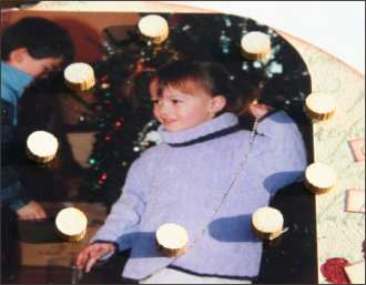 Découper une photo en 6.5 x 10.5 cm et arrondir les coins. La