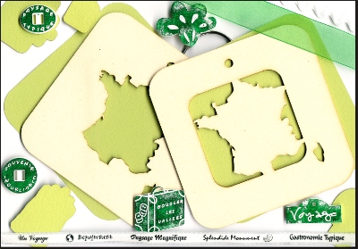 1 page carrée de 14 cm de diamètre, avec la France découpée, dans un carton de 2 mm d'épaisseur,