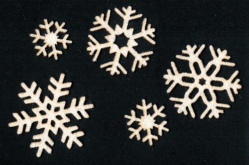 Ce lot comprend 5 cristaux de neige. Les 3 plus grands font d'environ 6 cm, les 2 plus petits 3 cm. Alors, régalez vous à accompagner vos photos d'hiver de ces jolis flocons tout doux.
