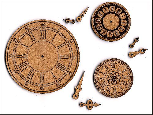 Description Voici 3 horloges en liège de 2 mm, superbement gravées... La plus grande fait 10 cm et les deux plus petites 5 cm. Vous pouvez y ajouter les aiguilles en liège livrées avec, en les fixant avec un brad dans le trou au centre de l'horloge.