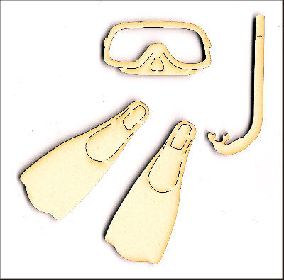 Voici tout le nécessaire pour plonger ! Les 2 palmes mesurent chacune 2.5 par 6 cm. Le masque fait 4.5 par 2 cm et le tuba 2 par 6 cm !